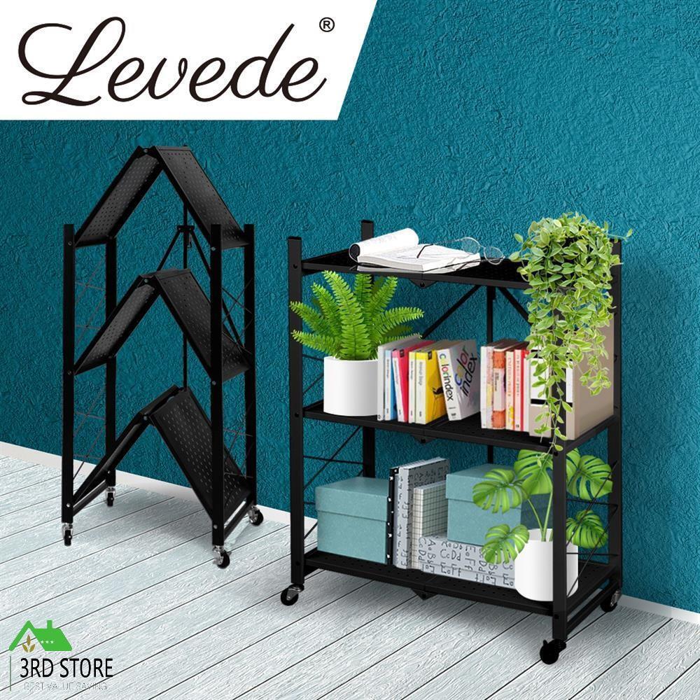 Levede Foldable Storage Shelf Display Rack Bookshelf Bookcase Wheel Collapsible