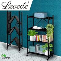 Levede Foldable Storage Shelf Display Rack Bookshelf Bookcase Wheel Collapsible
