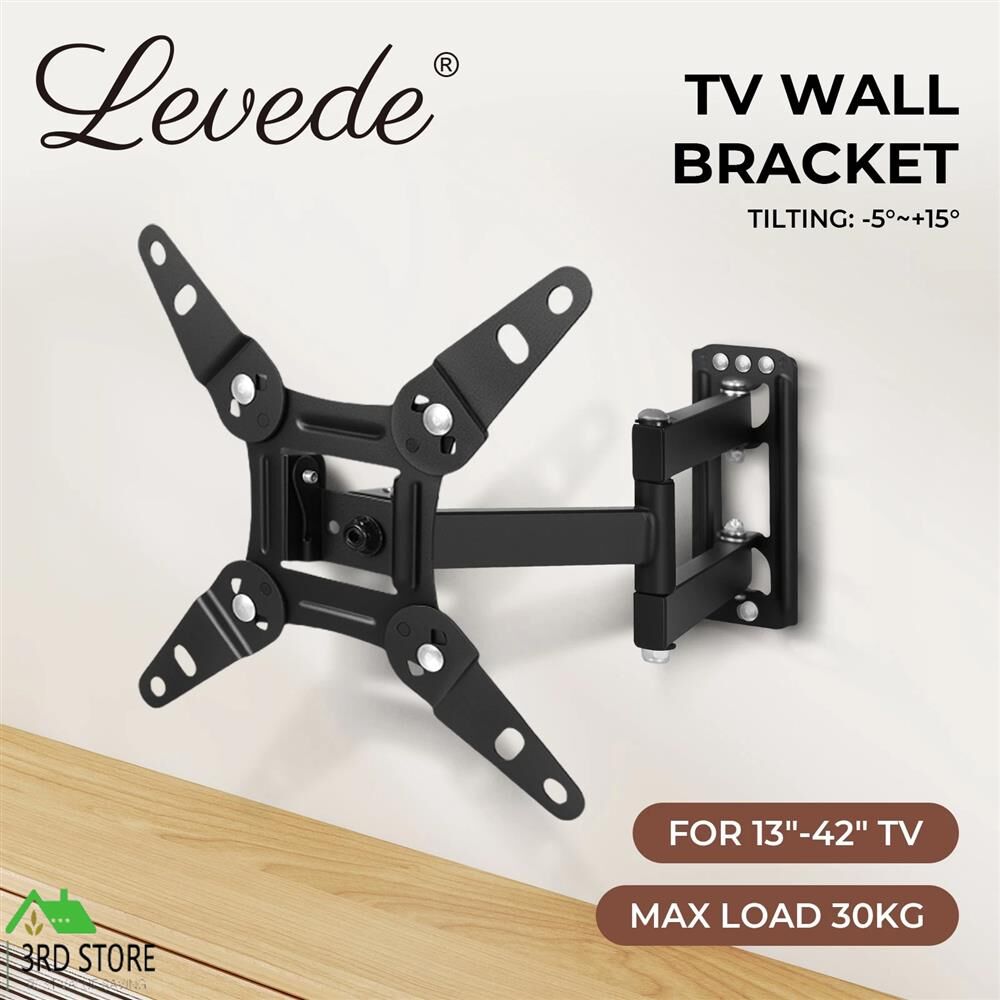Upgrade your viewing experience with the Levede TV wall bracket, designed for both functionality and style. Crafted from durable iron with a sleek black finish, this black TV bracket supports screens from 13–42 inches with a maximum load capacity of 30kg. The modern TV wall bracket offers flexible adjustments, including a tilt range of -5° to +15° and a tv bracket swivel of up to 90° left and right, ensuring the perfect angle for every room. With a VESA compatibility of 75x75mm to 200x200mm, this wall mount tv bracket 13 inch to 42 inch is versatile and reliable.