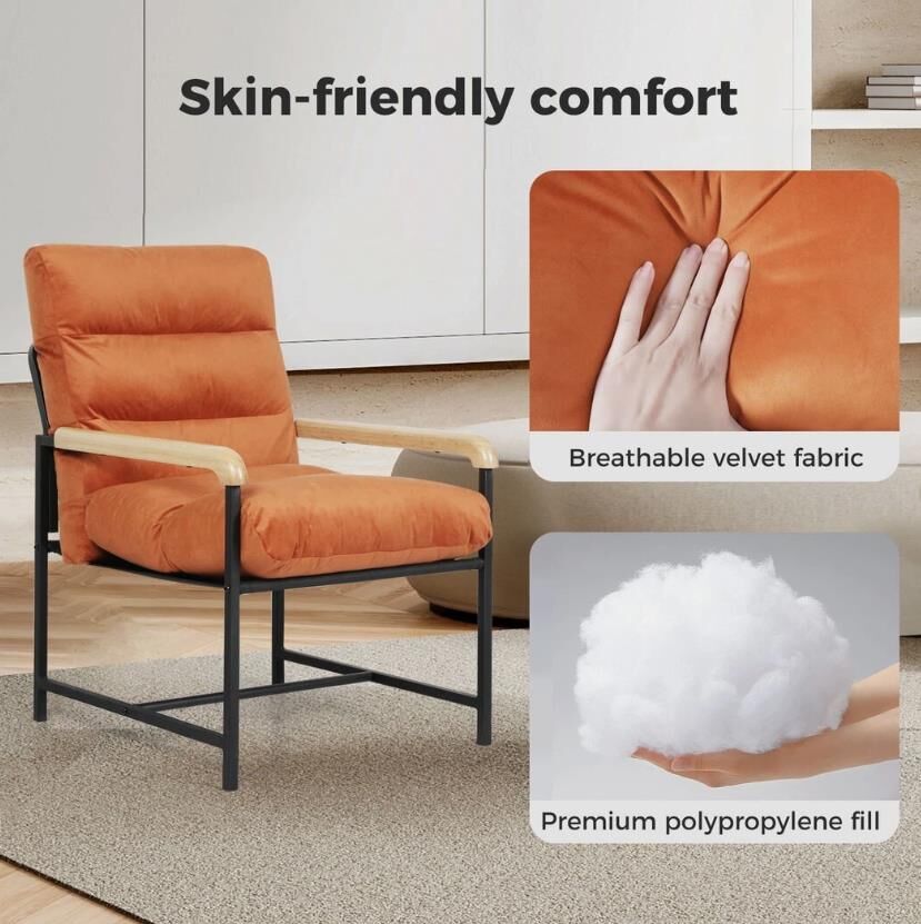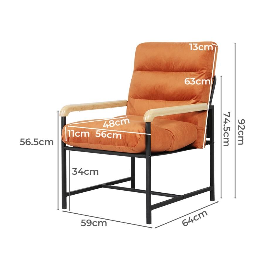 Levede Metal Accent Armchair Velvet Lounge Cushion Sturdy Frame Wooden handrail