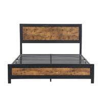 Levede Metal Bed Frame Mattress Base Platform Wooden Rivets Drawers Queen