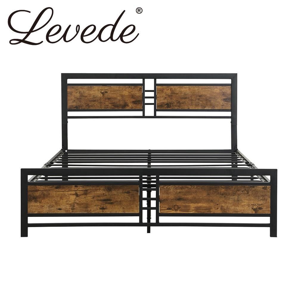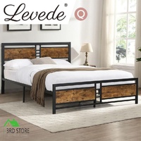 Levede Metal Bed Frame Queen Size Mattress Base Platform Wooden Headboard Black