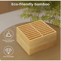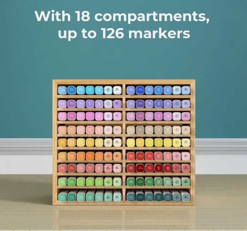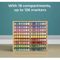 Keep your markers and pens neatly organized with this bamboo marker organizer. Made from eco-friendly, durable bamboo, this marker organizer features 18 individual compartments, allowing you to store up to 126 markers efficiently. Its compact design saves desktop space while keeping your art supplies within easy reach. Perfect for home, office, or studio use, this marker storage solution combines functionality with a stylish natural bamboo look.