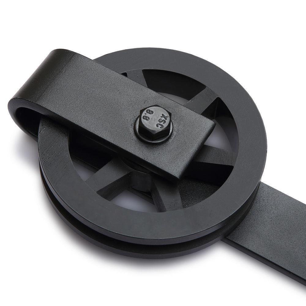 The Classic is the most universally purchased and used sliding door hardware style on the market today. The simple design has been perfected to fit with any style of home decor, from rustic, to transitional, to modern, the simple lines and minimalist design acts as complement, enhancing whatever style is intended. The nylon wheel has inset a bearing that results in a smooth, quietly, and incredibly easy and fluid operation of the door. Match this classic barn door hardware with any of our sliding barn doors. Designed, manufactured, and approved by Artisans.