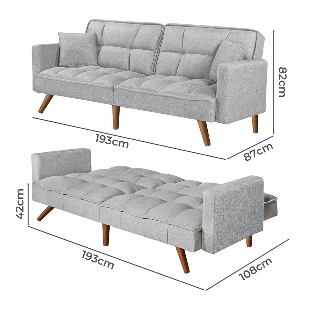 Levede Sofa Bed Futon Convertible Fabric Lounge Couch 3-Seater Recliner Grey