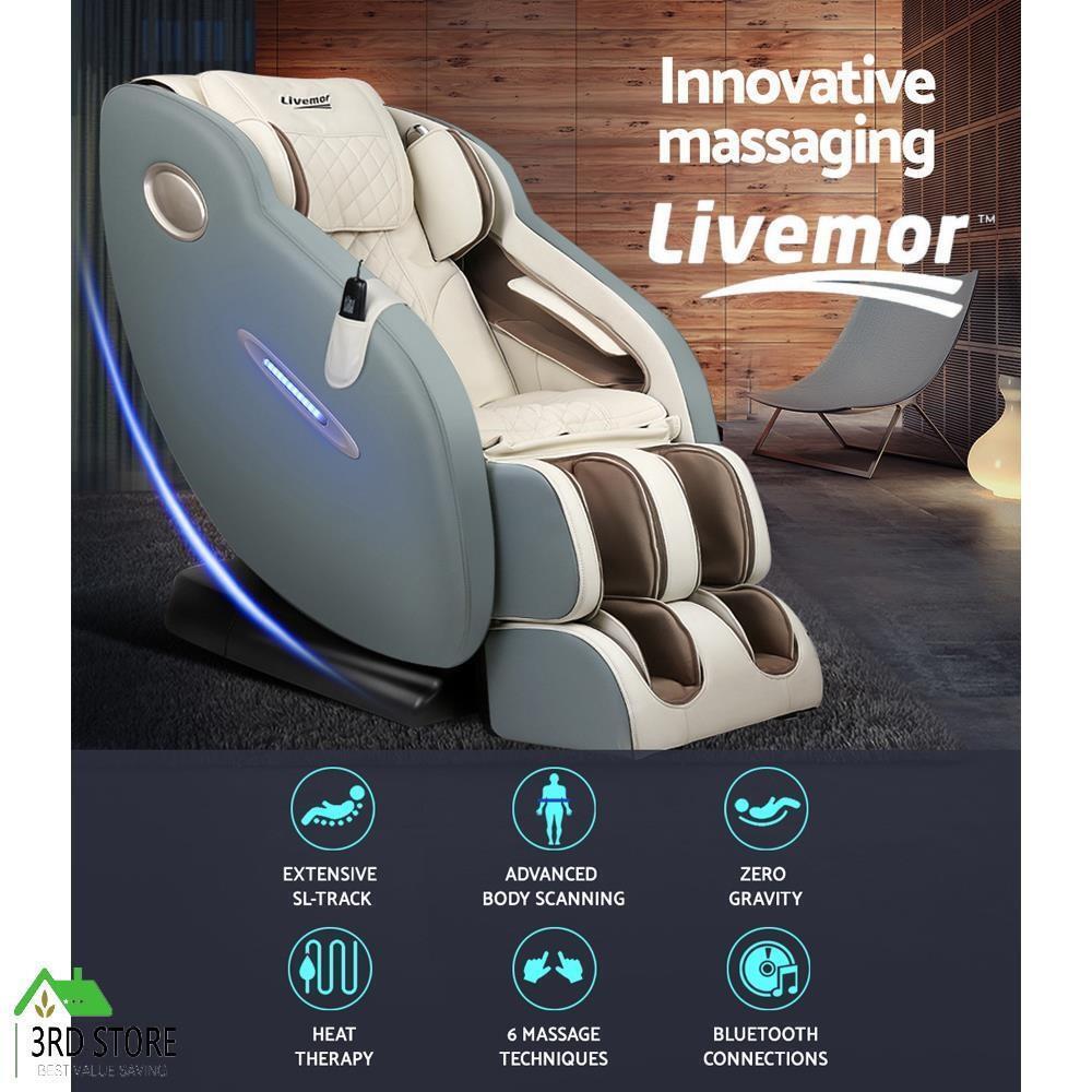 Livemor Electric Massage Chair Shiatsu Zero Gravity Back Head Massager 3D Cream