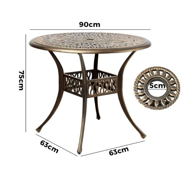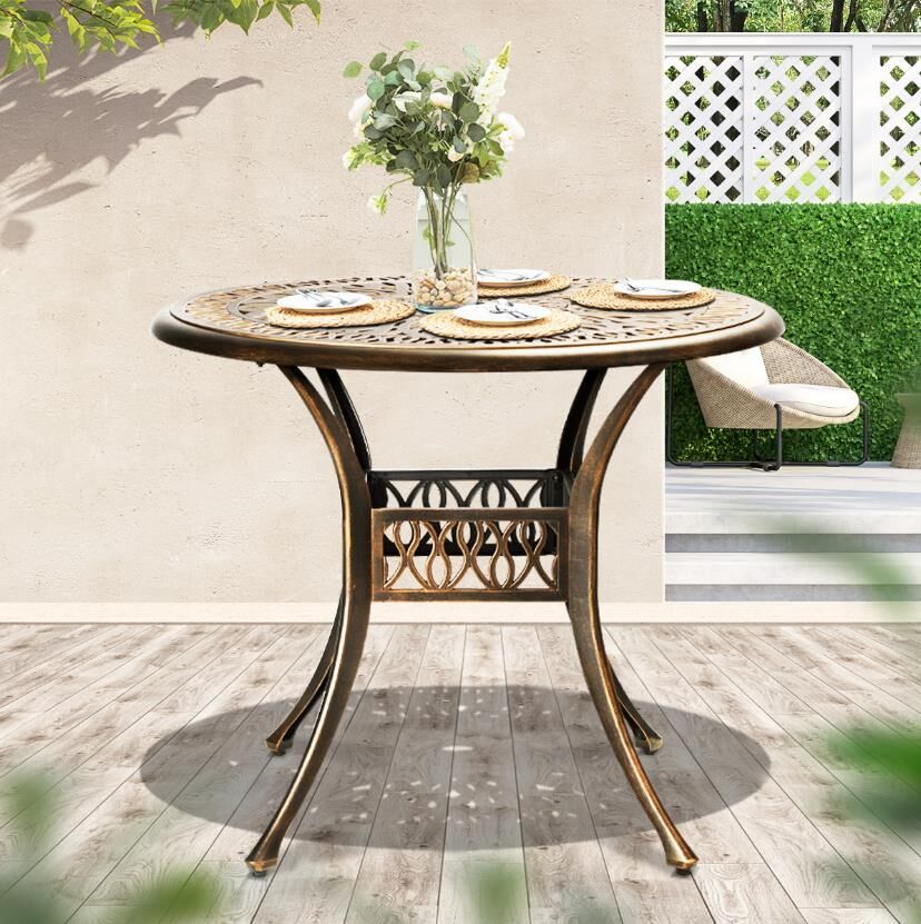 Livsip Garden Table Bronze Cast Aluminium Outdoor Patio Dining Side Table 75cm
