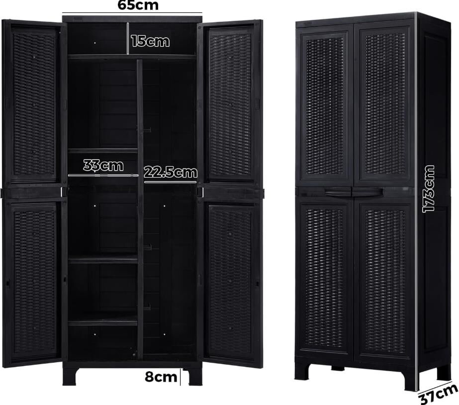 One can never have too much of storage space. And our Livsip Outdoor Storage Cabinet is just perfect to provide ample storage for all your gardening paraphernalia and then some more. Made of maintenance-free plastic, the storage cabinet is designed to withstand the weather elements. The cabinet features with adjustable and removable shelves that allow you to store tools, cleaning supplies, and other materials and ensure that items are clean and neat. What's more, it features a pegboard divider with 6 hooks to hook up your hoses, ropes and similar items. Better still, the door is lockable, which enhance the security and safety. Perfect to use in areas like a covered patio and a garage.