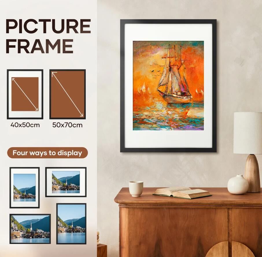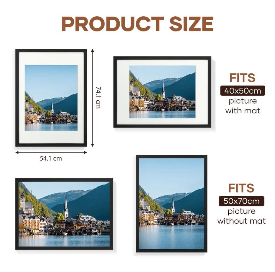 Bring an elevated modern decor to your home with this picture frame. Finely crafted using a solid structure and high-definition cover, this photo frame keeps your memories safe from dust, fading, and damage while offering a clear, vivid display and long-lasting durability. Designed to fit 40x50 cm photos with a mat or 50x70 cm without a mat, this versatile frame is perfect for posters, certificates, crafts, drawings, or canvas art. Plus, the included spring clips make inserting, removing, or changing pictures quick and effortless. Whether hung vertically or horizontally, the classic black frame complements any decor style and adapts easily to different spaces. Showcase your precious moments or family stories in the bedroom, living room, dining room, or office with this timeless wall photo frame.