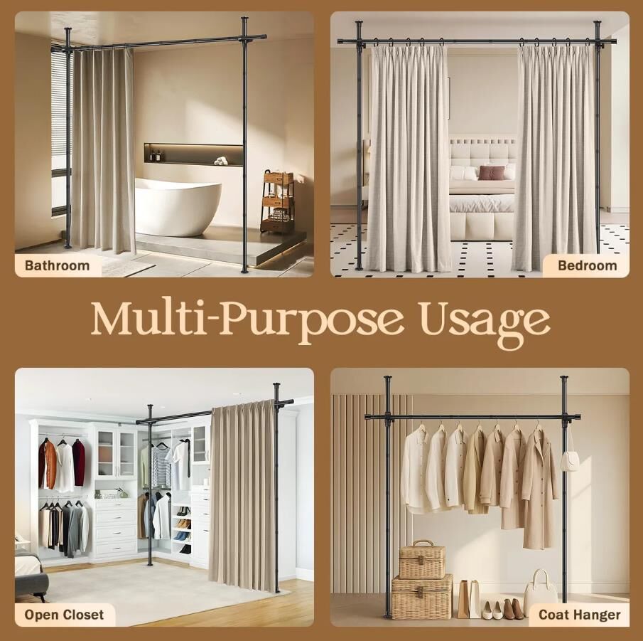 Luxsuite Room Divider Curtain Rod No Drilling Wall Space Partition Separation