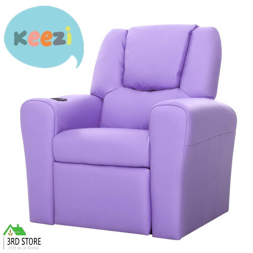 Keezi Kids Recliner Chair Leather Linen Soft Sofa Lounge Couch Children Armchair