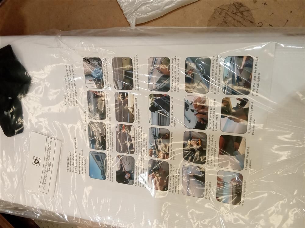 1 x Manan RV Awning Fabric Replacement 1 x Pull Strap 6 x Hooks 1 x Instruction Manual
