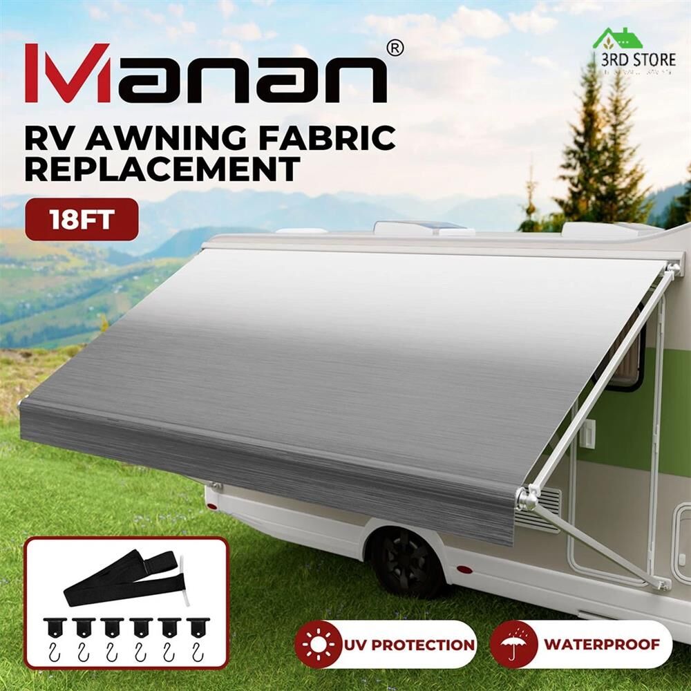 Manan RV Awning Fabric Replacement 18FT 18.05oz Shading Roll Out Vinyl Caravan