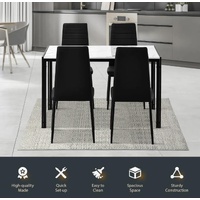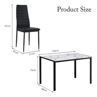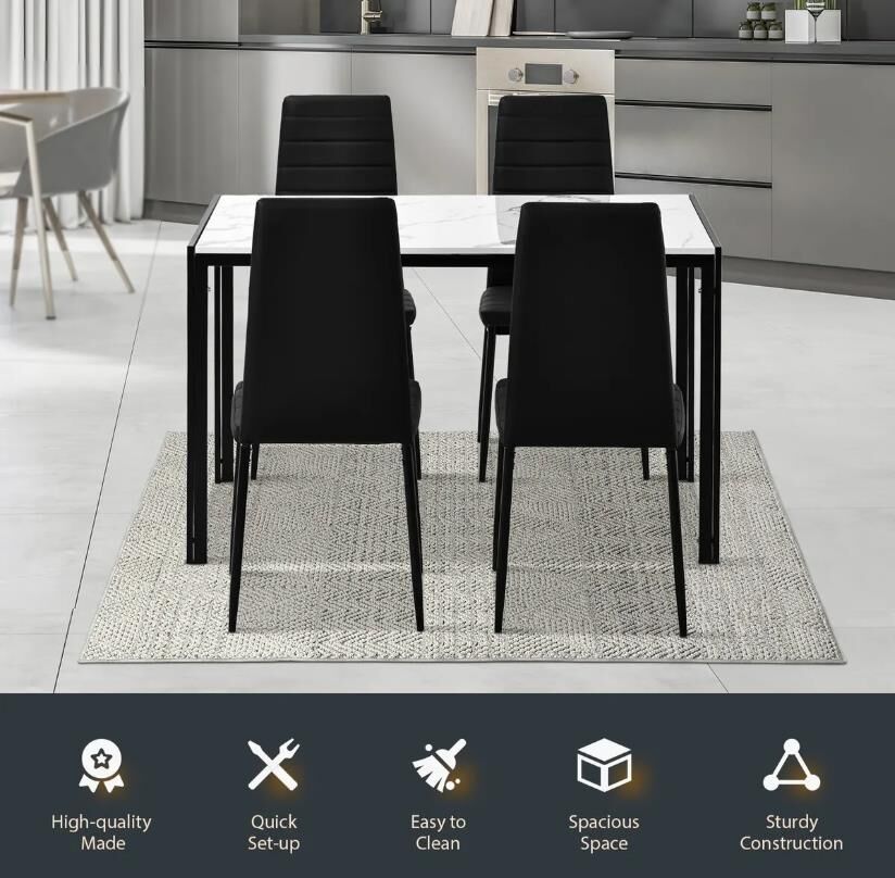 This five-piece dining table set features a high-gloss imitation marble surface with sleek lines, bringing modernity and elegance to any home decor. Besides, the durable metal construction ensures lasting durability and robust weight support. Moreover, the chairs are designed for comfort, adorned with soft cushions and durable leather, including an ergonomically designed high backrest for enhanced support. Compact and ideal for a family of four, the set is space-saving, allowing chairs to be neatly tucked under the table after meals. Versatile for both home and commercial use, the set provides a spacious dining area. Better still, you can assemble it with utter ease thanks to the detailed instructions and included hardware. Plus, the waterproof marble table top and leather surface ensure easy cleaning, making maintenance effortless.