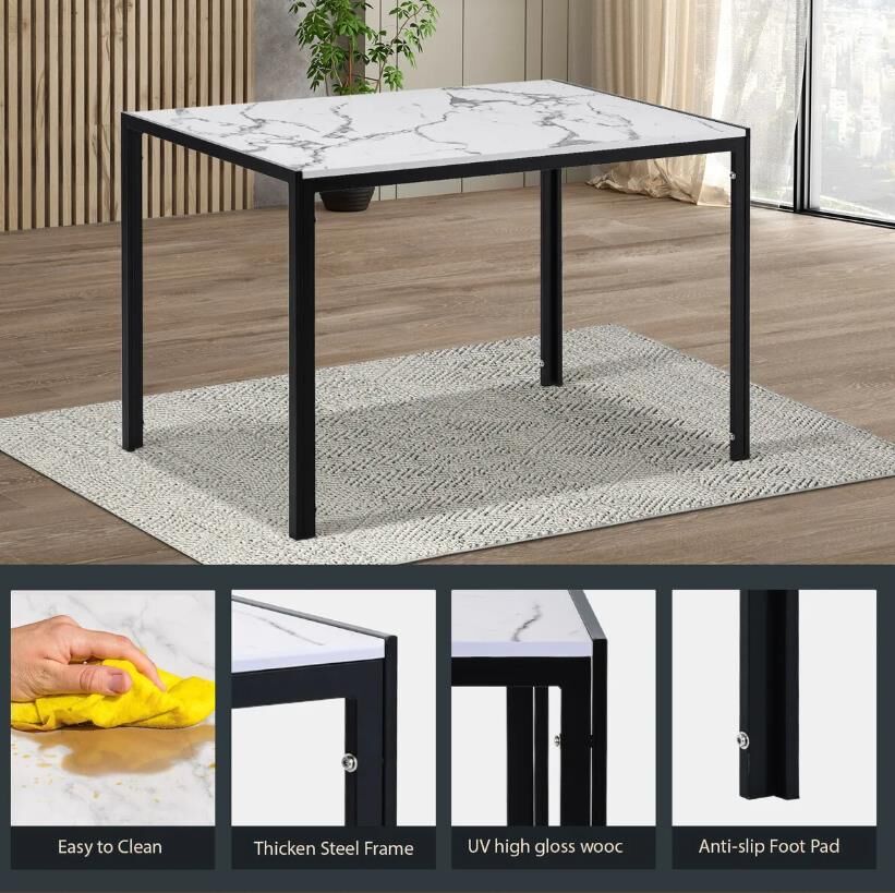 - Modern Elegance: This dining table set boasts a high-gloss imitation marble surface and sleek lines, adding a touch of modernity and elegance to your home decor