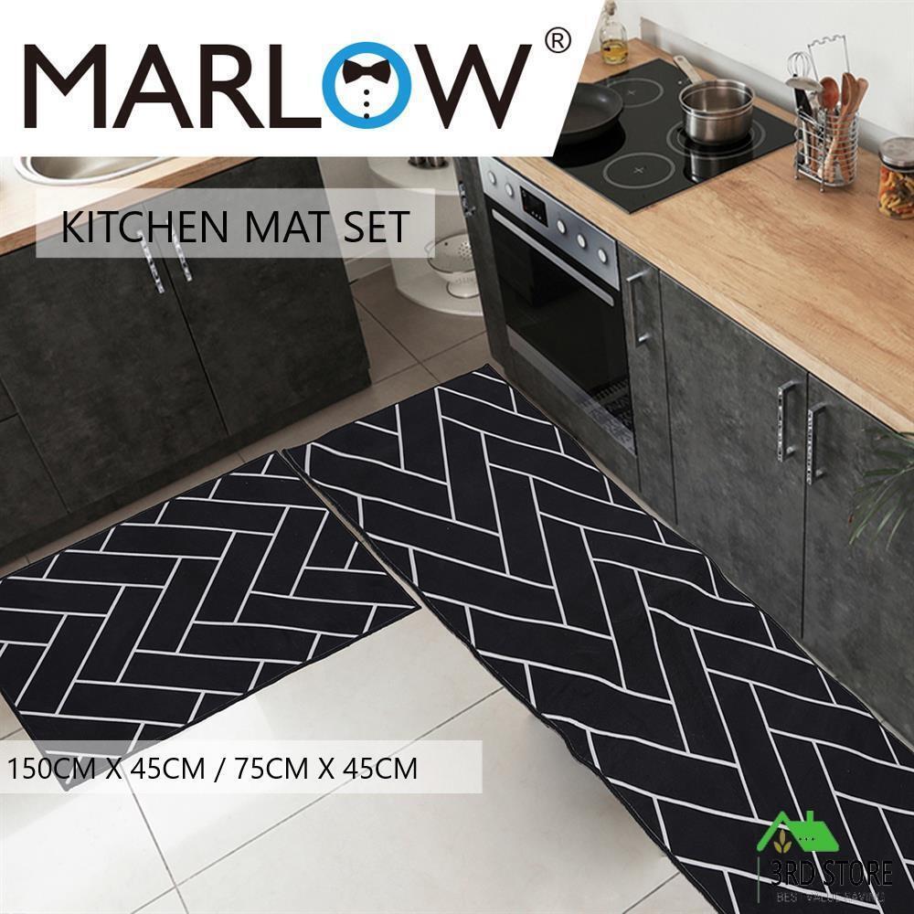 Marlow 2x Kitchen Mat Floor Rugs Area Carpet Non-Slip Door Mat 45x150cm /45x75cm