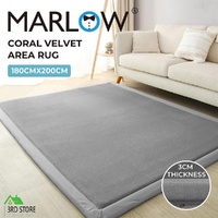 Marlow Coral Velvet Area Rugs 3cm Extra Thick Large 180x200cm Area Carpet Grey