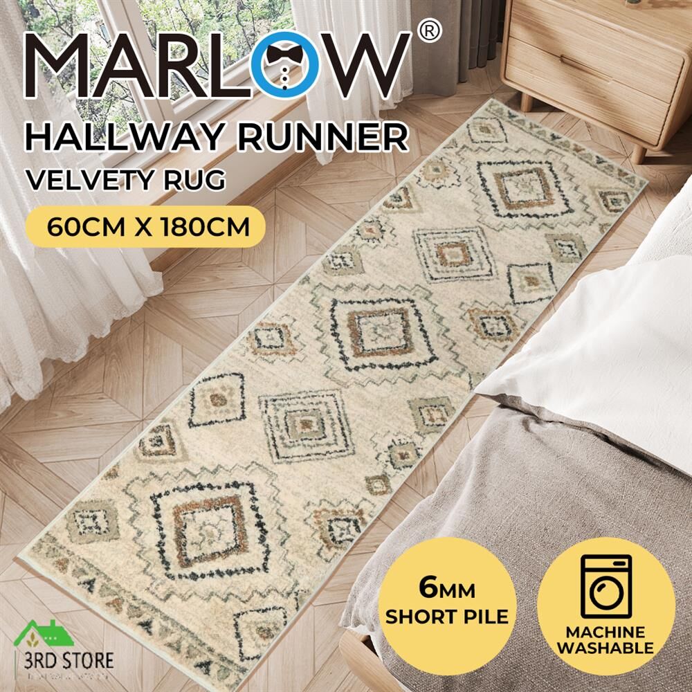 Marlow Floor Rug Hallway Runner Washable Soft Plush Carpet Non Slip 180X60cm