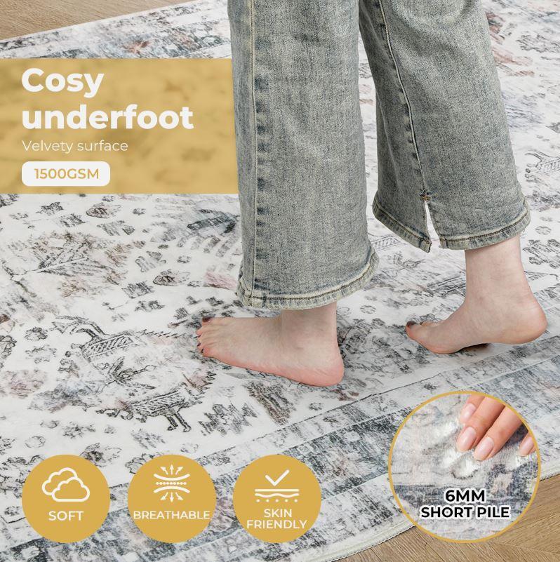 Marlow Floor Rug Vintage Short Pile Washable Area Rugs Soft 80x120cm