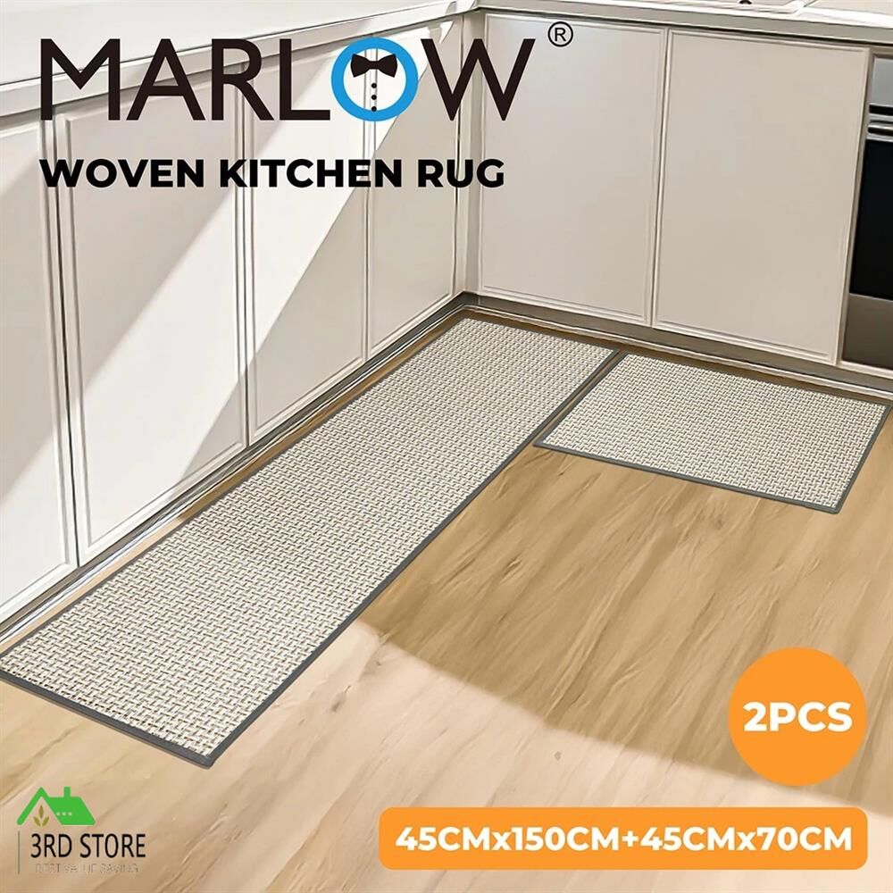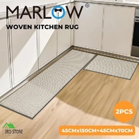 Marlow Kitchen Mat Set of 2Pcs Non Slip Woven Mat Absorbent Runner Washable