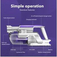 This 2-In-1 Cordless Vacuum Cleaner will create you a clean living space full of fresh air. Thanks to its advanced centrifugal filter system and high-efficient HEPA filter, the stick vacuum cleaner captures dust and impurities in a flash, and with the high-capacity batteries, it can work continuously for up to 45 minutes at a low speed. Better still, it is easy to operate, as it comes with a portable, bagless and cordless design. All impurities are collected in the 0.8-litre dust cup, and the cup is easy to remove. Also included are different accessories for solving various kinds of cleaning problems. Now it's your time to take this 2-In-1 Cordless Vacuum Cleaner home. Enjoy the convenience of cleaning!