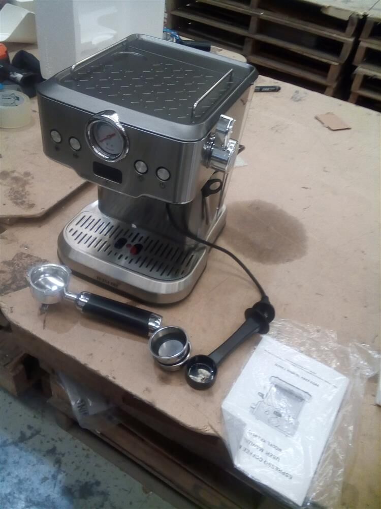 1 x coffee machine 1 x coffee spoon 1 x funnel 1 x two-cup coffee filter 1 x one-cup coffee filter 1 x 350ml milk jug 1 x coffee tamper 1 x user manual |