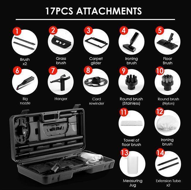 The premium Maxkon 3.4L Commercial Home High Pressure Steam Cleaner for Carpet Floor Window w/Indicator Light is a commercial-grade steam cleaner designed for both home and professional use, providing total 3.4L big water capacity. It is a continuous carpet steam cleaner with an initial heat up time of only 1 min - it harnesses the power of pure steam to delivery extraordinary cleaning performance from nothing more than tap water killing 99.9% of household bacteria. With no chemicals or scrubbing, the steam cleaning machine effortlessly removes tough grease from oven hobs & extractor fans, everyday dirt from hard flooring, stubborn stains from upholstery or carpets, and even limescale and mound from tiles and taps.