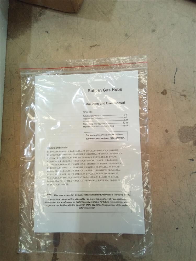1 x Maxkon 87cm gas cooktop 1 x natural gas regulator 1 x test point adapter 1 x instruction manual |