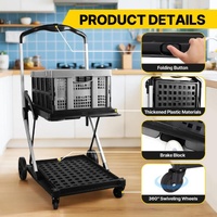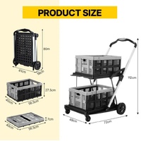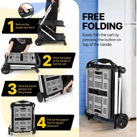 Transport more items efficiently and avoid lifting injuries with this Folding Hand Truck Luggage Shopping Trolley Cart Dolly Collapsible Baskets. This utility cart is equipped with two collapsible baskets, offering convenient storage options for different items and folds easily for compact storage, helping you keep your space tidy. Also, it has a smooth and ergonomic handle to provide a comfortable grip and reduce strain during use. Besides, the sturdy rear rubber wheels and 360-degree swivel front wheels make it easy to manoeuvre across various surfaces. Moreover, the foldable trolley is built from a lightweight yet durable frame, ensuring excellent sturdiness, great stability, and long-lasting performance. This multifunctional kit can be used in gyms, offices, warehouses, campsites or when shopping, as it can carry or transport items like tennis balls, boxes, groceries, documents, and even potted plants.