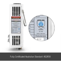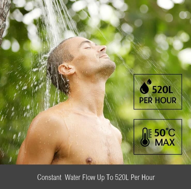 Enjoy an instant hot water shower with this MAXKON 520L/Hr Portable Outdoor Gas Instant Shower Water Heater – White while you are on an outdoor trip. Featuring a visible indicator and a smart thermostat device, you can read the real-time temperature, adjust the temperature at your preferred degree and avoid scalding. And this instant gas water heater is able to deliver hot water even with lower water pressure as 15kPa. This hot water heater, with a maximum flow rate of up to 520L per hour, supports multiple users. Qualified with Australian AS2658 standard, this gas hot water heater provides continuous hot water and maximum safety for each and every shower. Thanks to its anti-dumping device and waterproof device, gas will automatically shut-off when the heater falling down or being exposed to water. With a convenient carry handle, this efficient hot water heater is portable and easy to carry around. Complete accessories included. Don't miss the cheap and best outdoor gas water heater. Grab one now and make your outdoor life pleasant.
