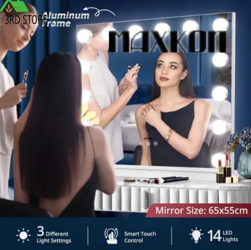 Maxkon Makeup Mirror Hollywood Vanity 14 LED Light Bulbs Sensor Touch Control