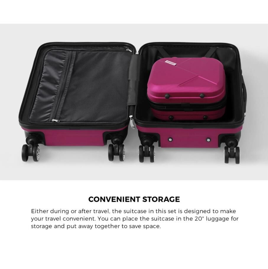 Travel in style and ease with our Mazam carry-on luggage sets! Our sets include a 12" suitcase and 20" carry-on luggage, designed to fit all of your travel needs.Crafted from durable ABS and aluminium handles, our luggage is built to withstand the wear and tear of travel. Featuring sturdy handles, reinforced corners, and TSA-approved locks, you can trust that your belongings will be safe and secure throughout your journey.