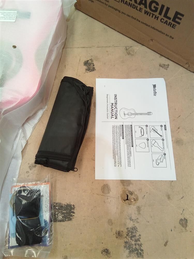 1 x 34" children Acoustic guitar 1 x guitar Bag 1 x guitar String 1 x guitar Strap 3 x guitar Picks 1 x guitar User Manual |