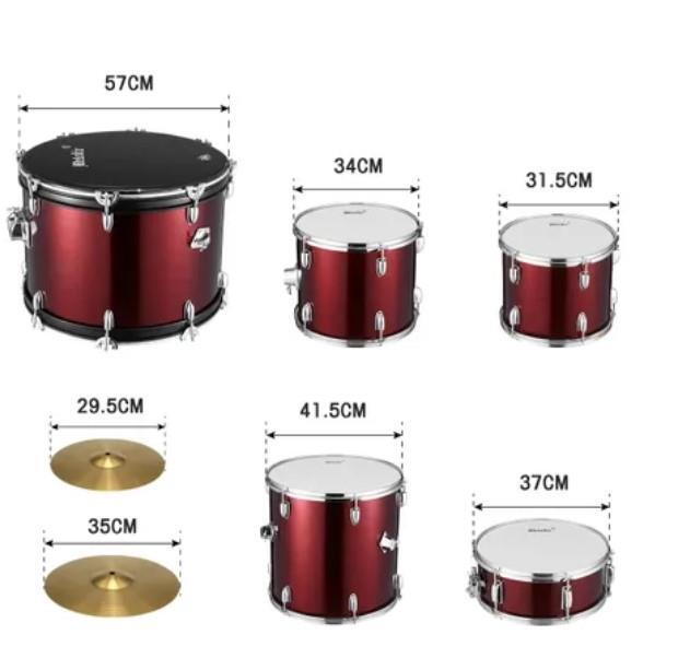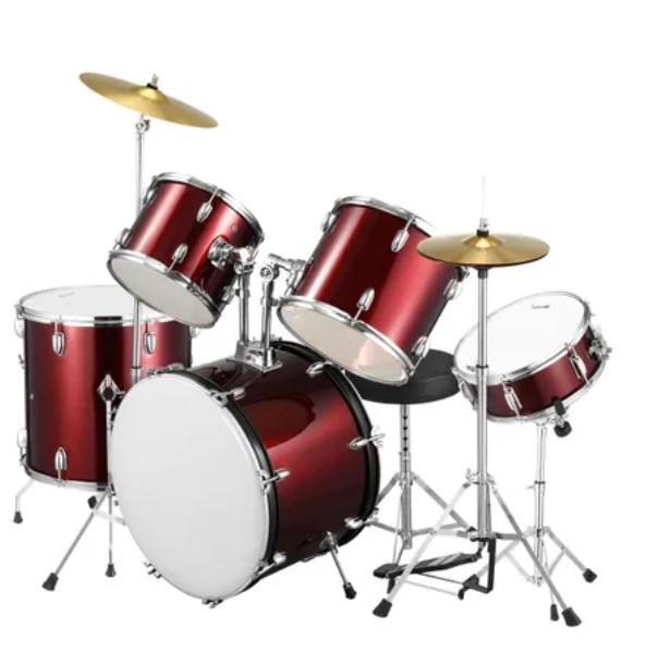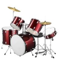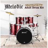 Melodic Full-size 5 Piece Drum Kit with Double Braced Hardware Cymbals Stool Red