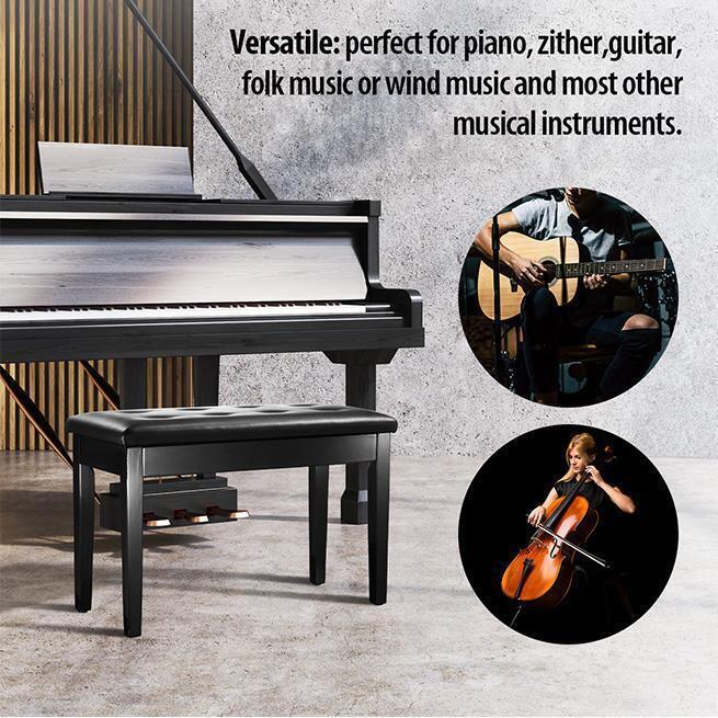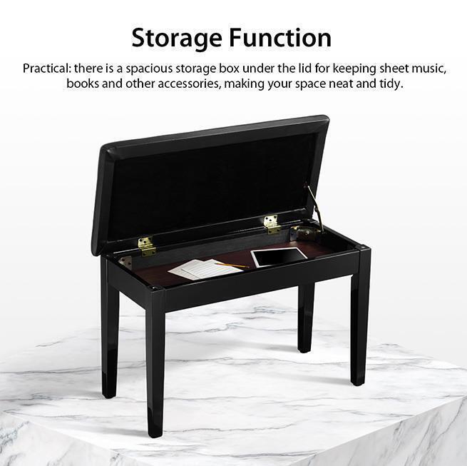 - 2-Person Seat: Measuring 75cm long and 35cm wide, this wood piano bench with storage can hold up to two people comfortably.