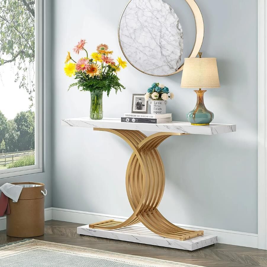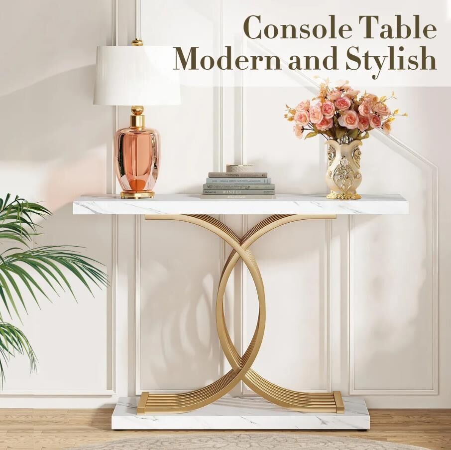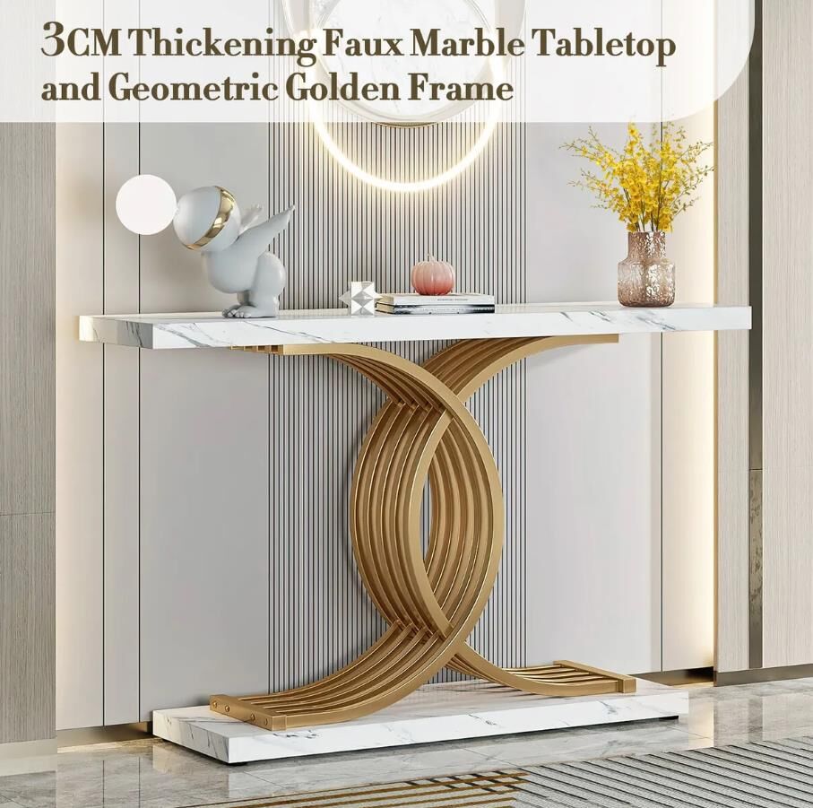 - Modern Glam Design: Featuring clean lines, a faux white marble finish, and a striking geometric gold metal base, this console table adds a luxurious contemporary touch to any space, perfect for the hallway, living room, entryway, or behind the sofa.