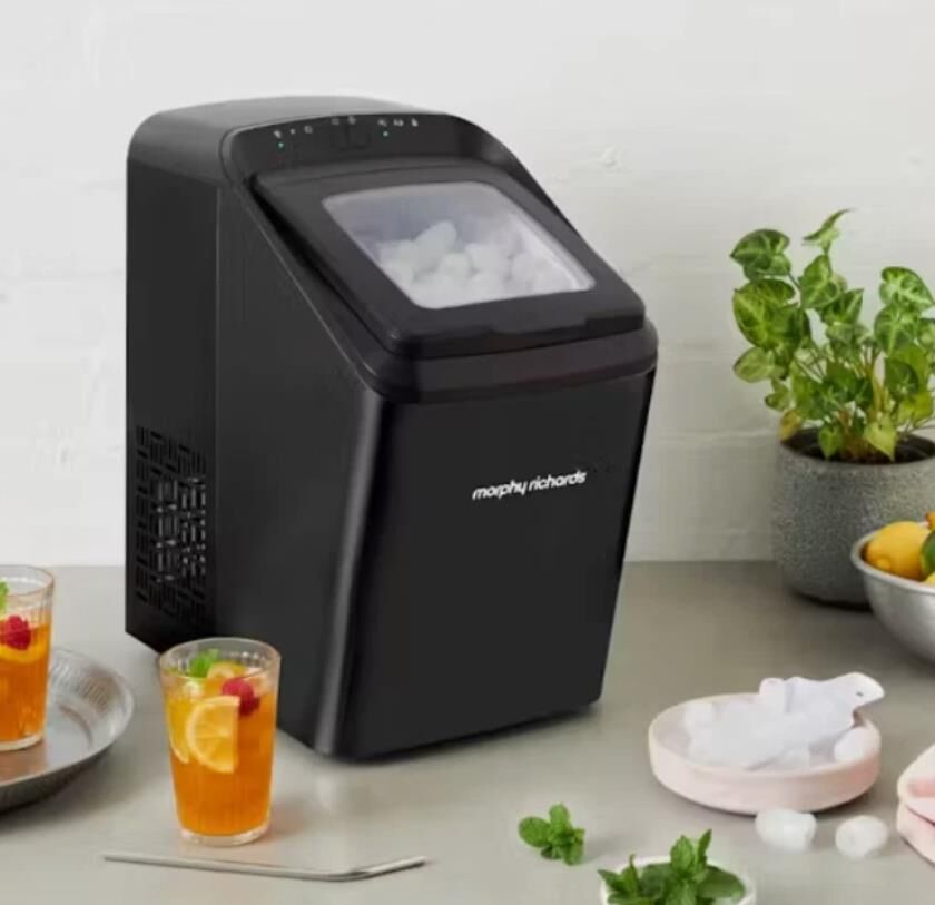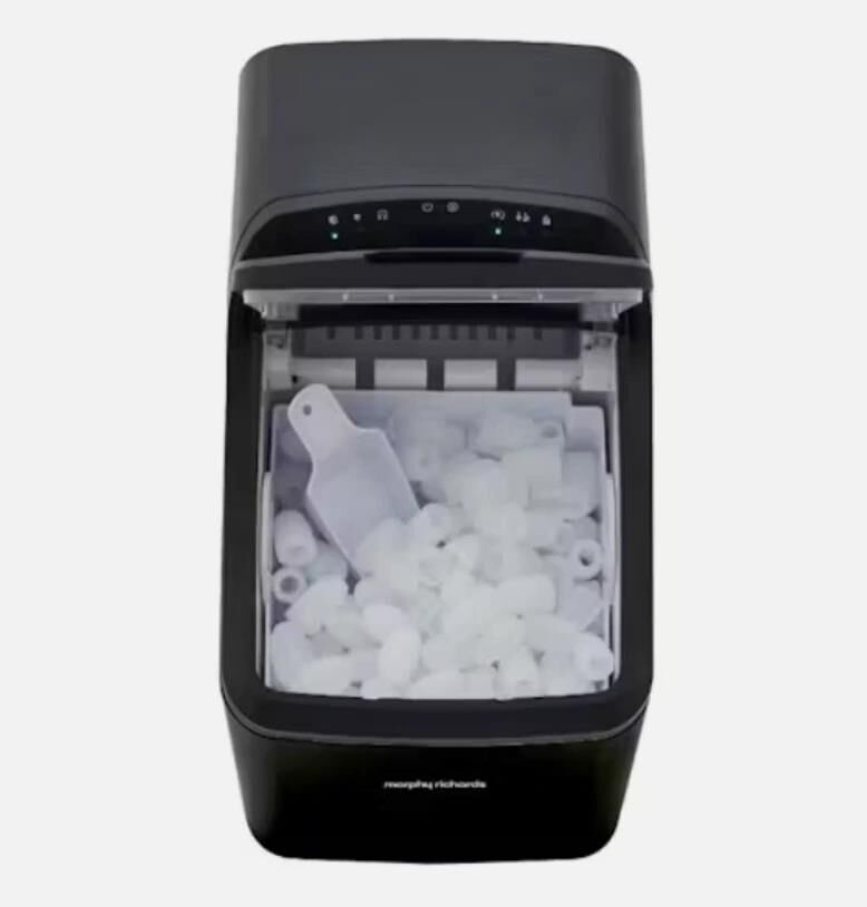 To Perfect for adding sodas, drinks, and desserts, the Morphy Richards Ice Maker helps make sure you have a ready supply of cylinder-shaped ice blocks to keep you chilled and refreshed. Depending on water and room temperature, the ice maker can create up to 9 ice cubes in about 7 to 11 minutes or up to 15kg in 24 hours.