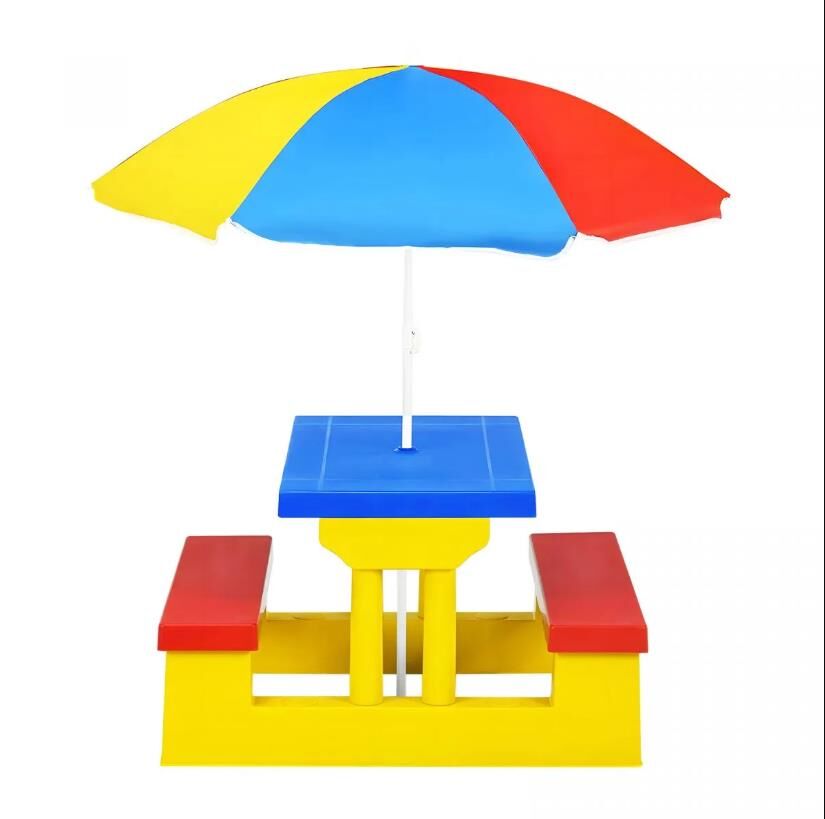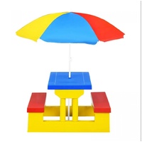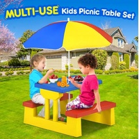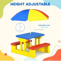 Multi-Colour Kids Picnic Table w/Umbrella Outdoor Indoor Play Bench Chair Set