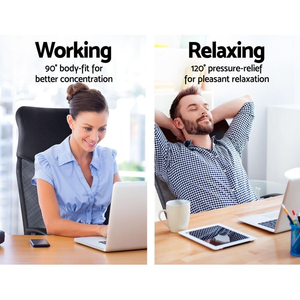 Tired of slouching over a desk, or sticking to hard plastic? Your back will thank you for purchasing our Artiss Mesh Office Chair. This eclectic chair is made of a combination of mesh and leather design for a unique, stylish presence that suits any office. The highly breathable backrest allows for good ventilation as well as appreciable lumbar support, while the high-density foam padded seat and headrest keep you comfortable over long periods. The omni-directional chair comes with all the necessary tilt and height adjustments and a gleaming chrome base with smooth castor wheels for easy shifting. With all that comfort, you'll never want to leave your desk. Work smarter with our Artiss Mesh Office Chair.