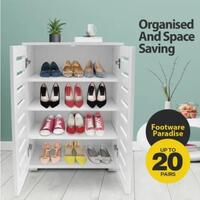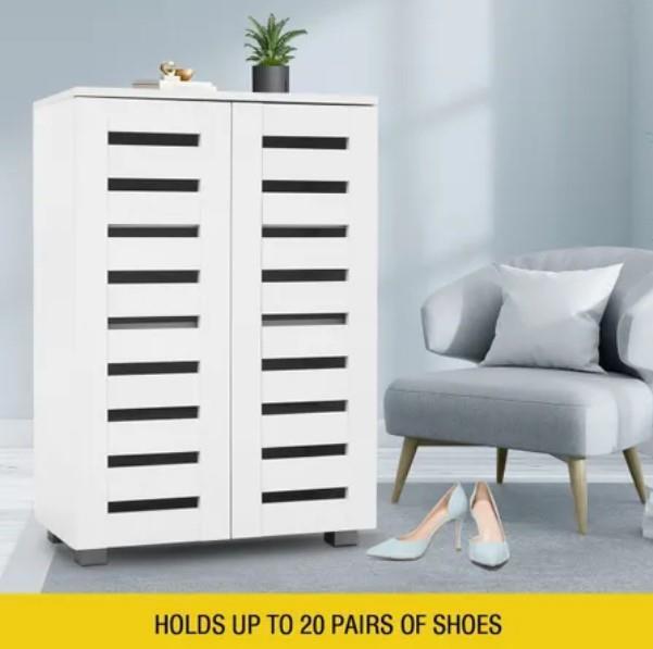 This clean-lined cabinet offers an amazing storage solution for plenty of shoes, including boots, heels, sandals, flats and sneakers. It works for both shoes which are worn daily and those that need to be stored for the off-season. The slatted doors are designed to give sufficient breathing room for the items inside. Four interior shelves behind the two doors can hold up to 20 pairs of your favourite footwear. Ideal for any space of your home, this unit isn't limited to shoes, but for other items like beddings, clothes and more. Order this storage cabinet and make the most of it.