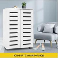 Shoe Storage Cabinet Wooden 2 Doors 20 Pairs for Home Entryway Closet White