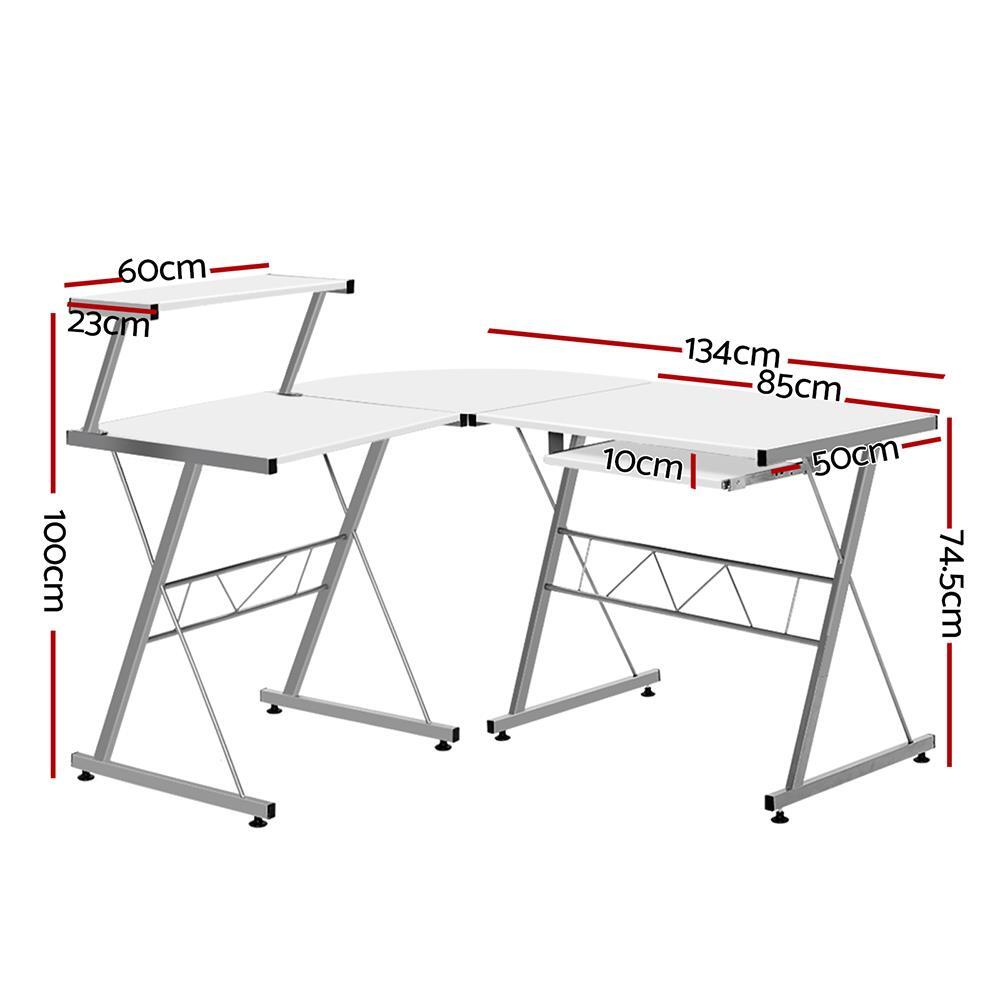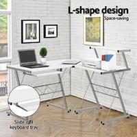 Artiss Computer Desk L-Shape Office Corner Table Metal Pull-Out Keyboard White