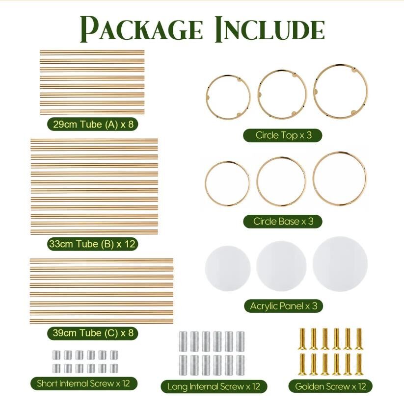 Have a memorable luxury event with the 3-piece metal round plinth cylinder pedestal stands. Supported by high-quality metal treated with a waterproof, rust-resistant coating, this set ensures remarkable strength, firmness, and durability and excellent resistance to fading and corrosion. Featuring a hollow base, these metal stands can be used to display cakes, hold flowers, or store small decorative items. Moreover, three pedestal stands in varying heights suit a range of display needs. Whether used as flower stands, plant holders, art displays, or chic side tables, these pedestals will add a touch of elegance to any space. Assembly is quick and hassle-free thanks to the detachable design, allowing for compact storage and easy reuse for multiple events. Blending elegance and functionality, these gold cylinder stands are ideal for weddings, parties, baby showers, or stylish home decor and are a thoughtful gift for friends, family, or newlyweds.