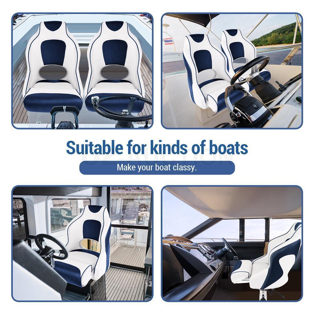 OGL Captains Bucket Boat Seats Seat Helm Chair Flip Up Bolster All Weather Blue