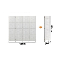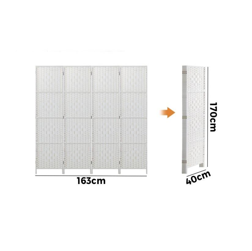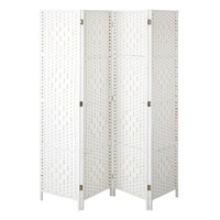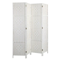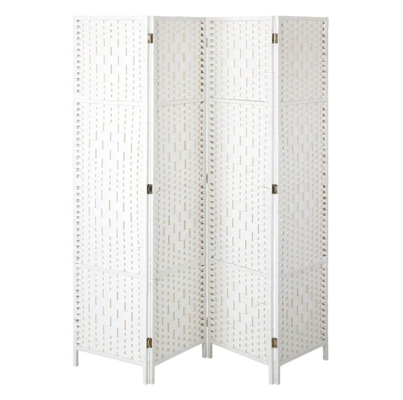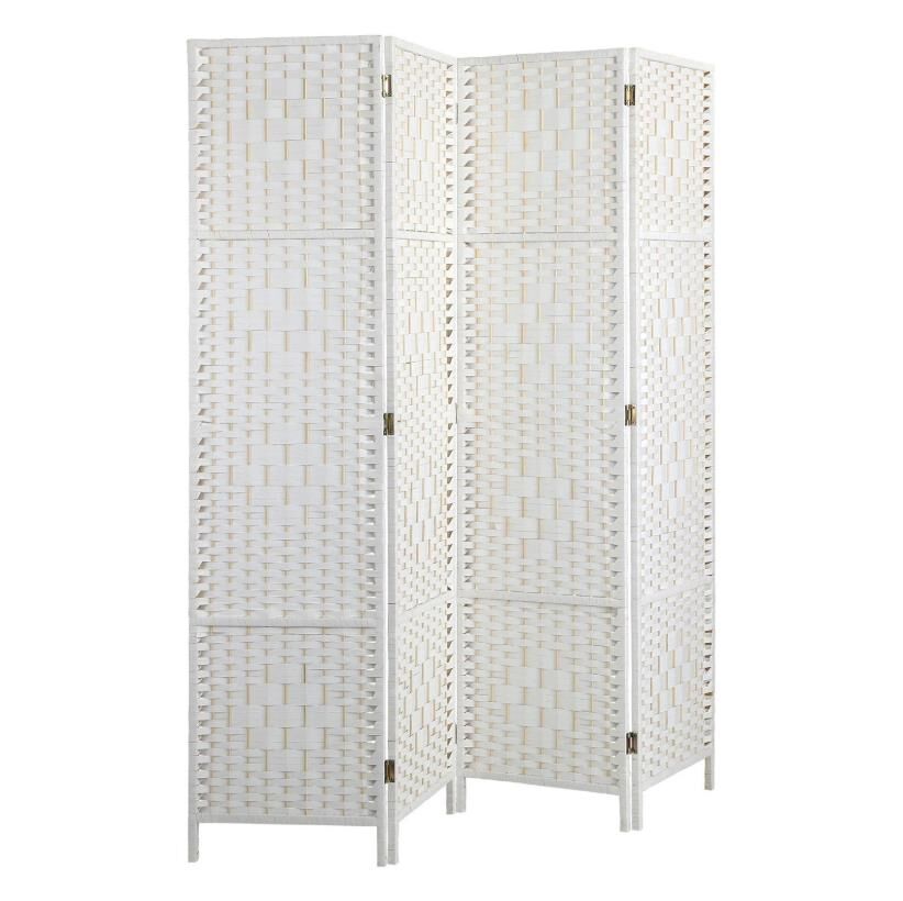 Oikiture 4 Panel Room Divider Screen Privacy Dividers Woven Wood Folding White