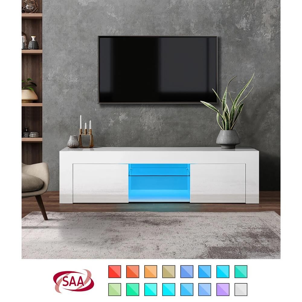 Oikiture Entertainment Unit TV Unit TV Cabinet Stand LED RGB Gloss 130cm White