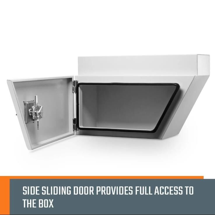 - The door features a weather-resistant rubber seal for keeping all items inside dry and safe