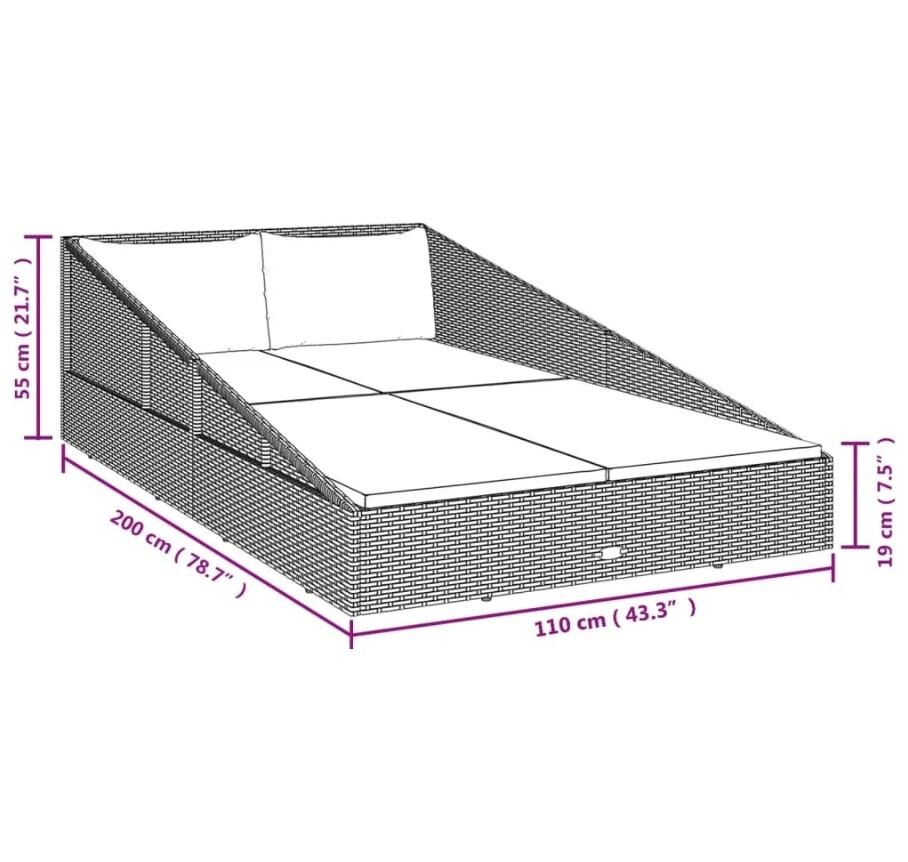 Made of weather-resistant and waterproof PE rattan, the daybed is easy to clean, hardwearing and suitable for daily outdoor use. The powder-coated steel frame makes the sun bed very stable and durable. This outdoor bed is delivered with 4 seat cushions and 2 pillows. The comfortable, thick soft cushions are made of water-water proof polyester. In addition, the covers are equipped with zips, so the covers are removable and washable.