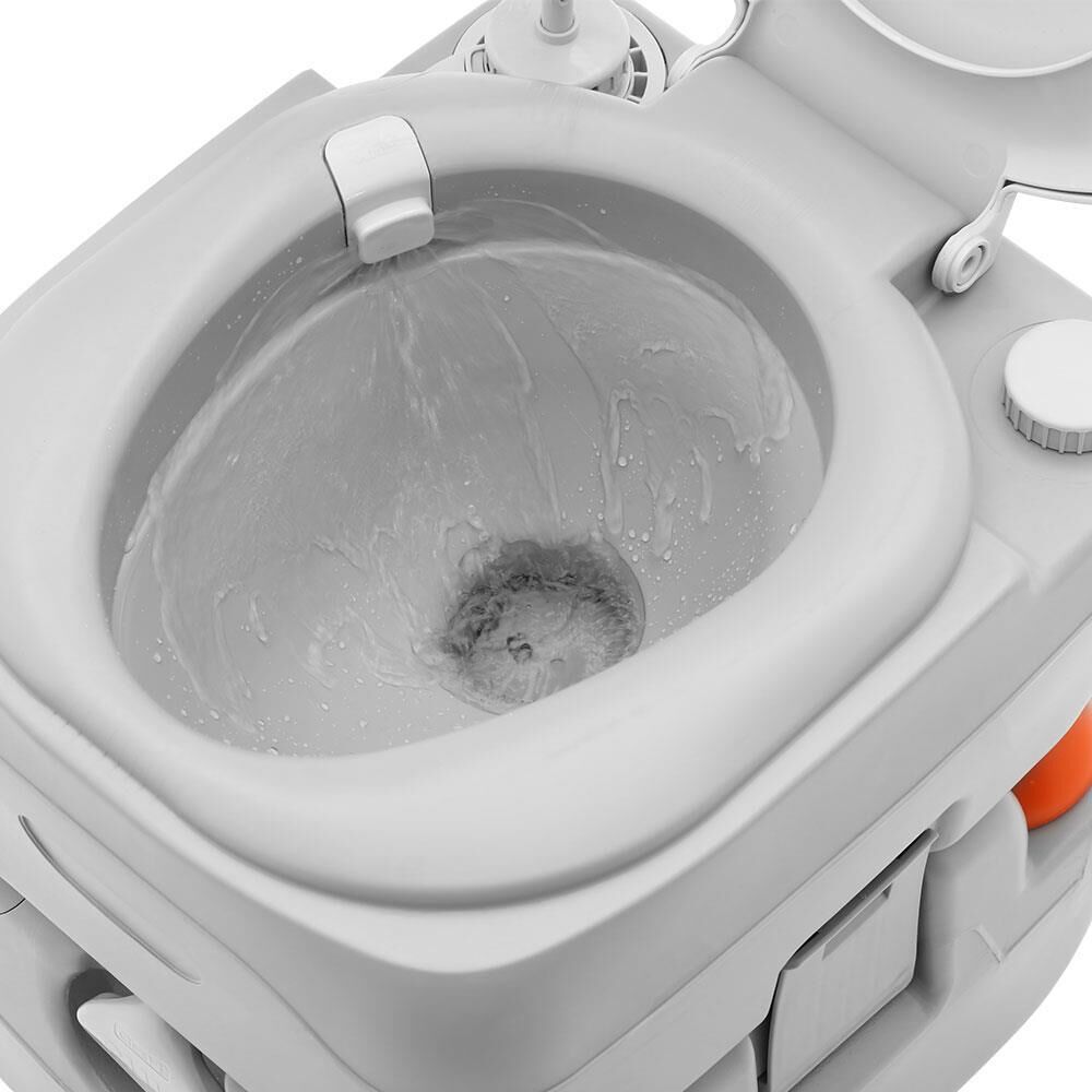 For instant relief while camping, nothing beats having this Weisshon 22L Portable Camping Toilet around. It features a high quality construction and generous water reserves. In fact, 14 litres of freshwater capacity that is good for up to 80 flushes. And unlike others, its two-way flush is ultra strong and ensures total and complete flushing for a thoroughly cleaned toilet. The double-sealed drain valve also protects against leakages and odours. The high-density construction makes it strong and durable while both the water and waste holding tanks are of one-piece construction with heavy-duty and corrosion resistant side latches locking the tanks together. The portable toilet has an attractive matte finish and is scratch-resistant. Not least, the 22-litre holding tank is detachable for easy disposal of contents and cleaning. With no power or water source required, our portable toilet is just perfect for your camping, picnic, marine or road trip.