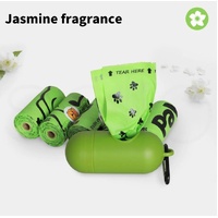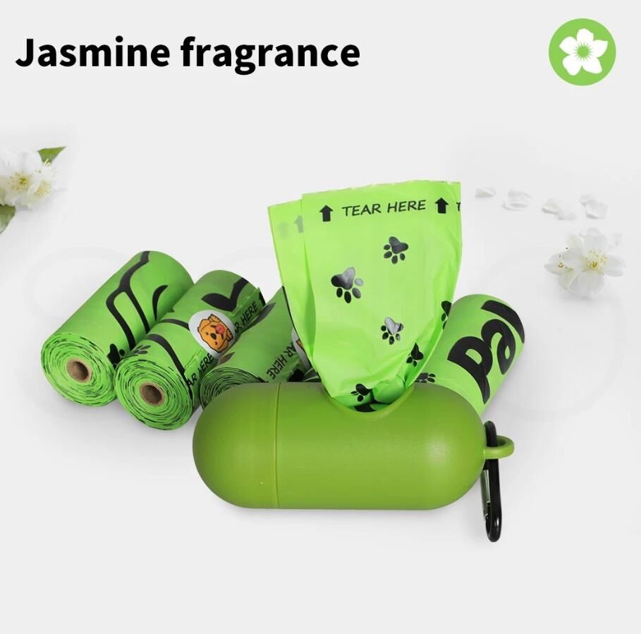 Dog poo doesn’t smell great. In fact, it smells bad. Your compostable dog poop bags are jasmine scented. It won’t hide the smell if your dog gets in your curry again, but I don’t think anything can help you there.